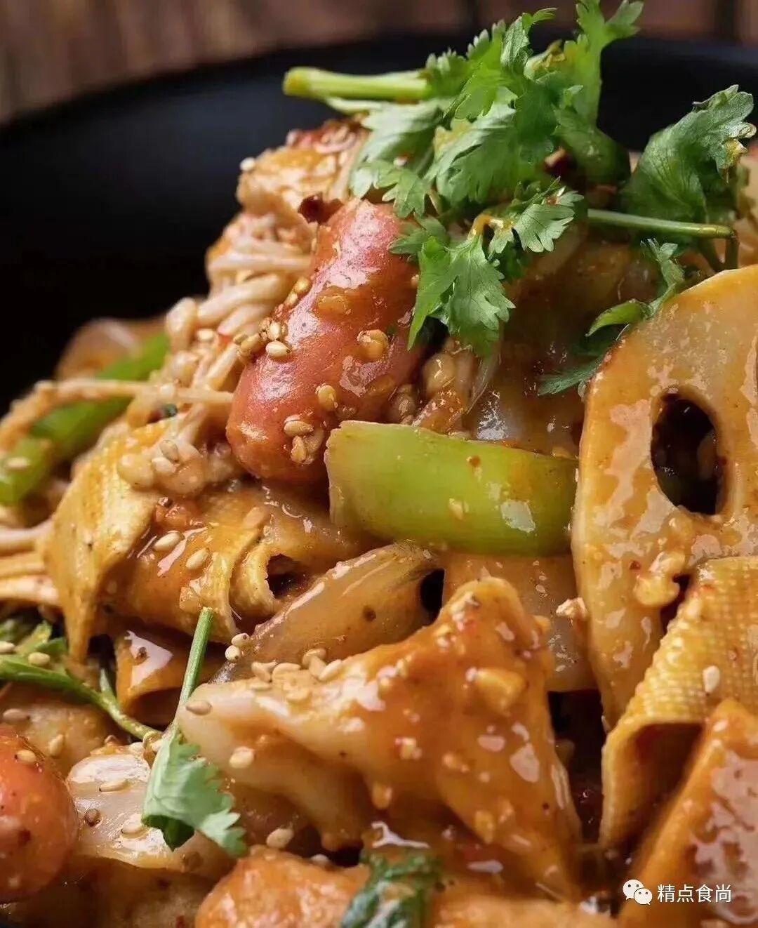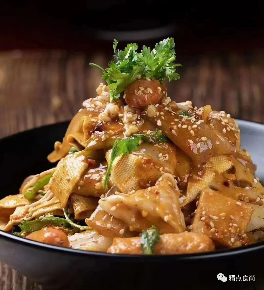 【步骤】1、制作油泼料:把蒜蓉15克 小米辣碎10克 中细辣椒面5克、花椒粉1克、麻椒粉1克放在碗中,起锅放入花生油烧至七成热(210度),浇在碗中搅拌均匀备用。2、制作秘制酱料:把芝麻酱30克、花生酱30克、恒顺香醋30克、蚝油10克 李锦记生抽20克、甜面酱20克搅拌调至细腻,加入白糖15克、老干妈油泼辣子15克、盐2克、香油3克调匀、再加入开水50克调匀至细腻状态备用。3、锅内加水烧开,先放入鱼豆腐、甜不辣、肉燕、脆脆肠 鱼丸、土豆片、藕片、豆腐皮、豆腐泡、平菇、金针菇、大白菜、魔芋丝煮至两分钟,煮透后放入宽粉、茼蒿、油菜等青菜者至30秒,捞出沥干水分放入碗中。4、把油泼料和秘制酱料混合一起搅拌均匀,浇一半酱料在碗中,撒上花生碎、芝麻、香菜搅拌均匀即可。