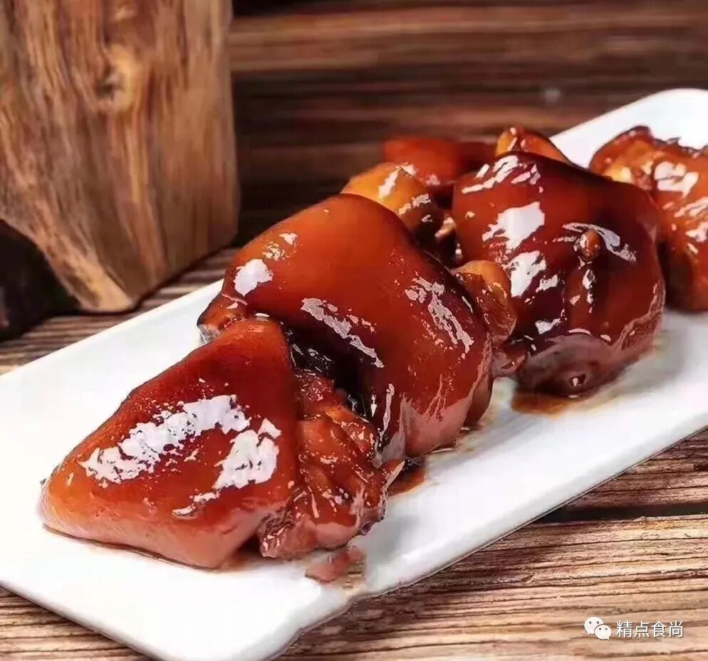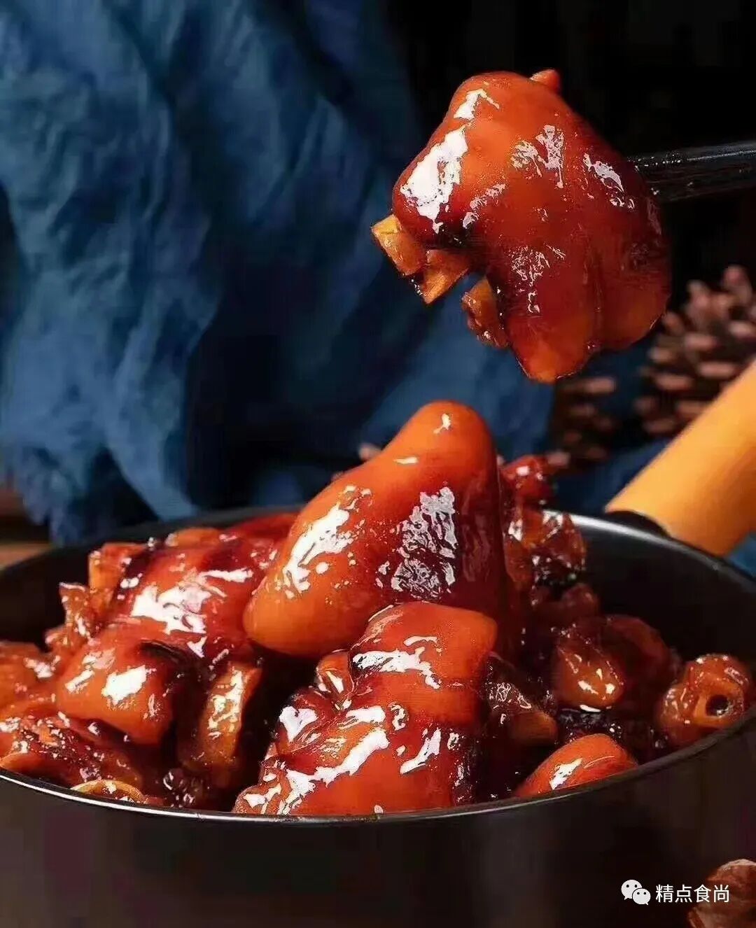 【制作方法】1、净猪蹄块(一个猪蹄剁六块),用厨房纸里外擦干水分,猪蹄表皮均匀的涂抹蜂蜜备用。2 锅内加入食用油500克,烧至六成热(180度),把猪蹄表皮炸制红色捞出。(也可放80克油,加热到五成热(150度),煎制上色)。3 另起锅加入之前用于煎制的80克油,烧至五成热,加入葱、姜、蒜炒至金黄色,加入香料煸炒,出香气。4、放入炸好的猪蹄,烹入酱油、花雕酒、冰糖、蚝油、盐、鸡精烧开锅后,加入啤酒烧开。5、放入砂锅中封上锡纸,盖上锅盖小火焖制两个小时,取出葱姜蒜和香料(或者把炒好的葱姜蒜、香料用纱布包好),大火收汁浓稠后淋香油即可出锅装盘。温馨提示1、猪蹄也可放入高压锅压制25分钟,收汁达到同等的效果。2、油炸猪蹄时注意安全、以防油花溅出烫伤。3 油煎猪蹄要掌握好火候、猪蹄拌入蜂蜜后很容易上色或焦糊。