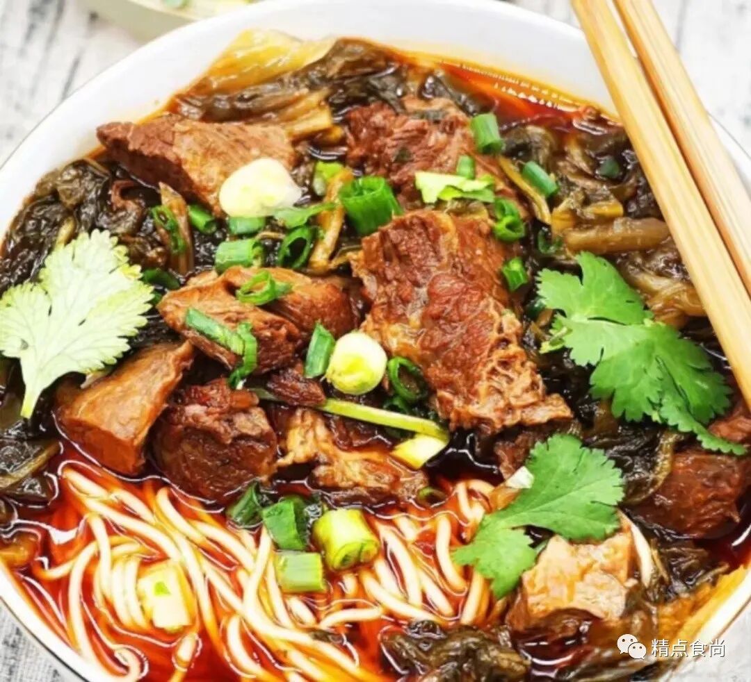 泡制酸菜1.青菜洗净 晾晒干。2.在泡菜坛中放入纯净凉水1500克 盐250克 老姜120克 花椒7克 冰糖10克 五十五度左右白酒25克搅匀。3.放入晾干的青菜,盖上盖子,注上坛衔水封坛一个月,至酸菜颜色变黄、味道变酸即可。熬制酸菜1.根据用餐人数取适量泡好的酸菜冲洗,切条。2.锅里加入15克猪油(或色拉油),炒酸菜至出香。3.加入水,大火烧开转中小火熬制十分钟即可,备用处理牛肉1.冷水洗净牛肉。2.牛肉改刀成大块放入锅中,加入老姜15克 料酒40克、大葱1根,加凉水开火。3.水开后打去浮沫,大约20分钟后(根据牛肉品质决定具体时间)至牛肉变硬,用凉水彻底冷却,改了成小块。制作糍粑辣椒、炒至红烧料注:如果不吃辣可以省略糍粑辣椒的步骤,直接从第3”步操作。1.将子弹头干辣椒30克放入锅中加水 至伊皮变软,大约20-30分钟(根据辣椒品质决定具体时 间)。2.煮好后冷却、用刀剁成细末。3.锅里倒入色拉油350克,待油温升到接近100摄氏度时倒入蒜颗粒30克,老姜颗粒30克红油豆瓣酱50克、红花椒5克(不吃麻可以不加) 剁好的糍粑辣椒翻炒五分钟烧牛肉1.加入牛肉、小茴香1克、桂皮2克、山奈4克、沙仁两颗(需祛籽) 香叶两片、草果1颗、八角两颗翻炒两分钟后,烹料酒30克。2.加入1000克水,烧开后倒入高压锅,再加入味精10克、糖色30克、少许胡椒粉盖上盖,上汽之后约20-25分钟即可。(如果没有高压锅,需加入1500克水13克味精 糖色40克中小火烧大约40分钟)手工面1.高筋面粉400克、盐1克、水200克揉成面团,醒面半小时。2.擀成面皮,对折切成面条即可。3.面条煮好起锅,根据自己口味淋上红烧牛肉和汤汁、酸菜汤汁即可备注:炒糖色。根据自己需要的最,锅里倒入薄滇一层油,加入白糖搅拌,再加入水淹没过白糖继续搅拌,经过塘沾、拔丝两个阶段之后,最后达到糖色阶段。