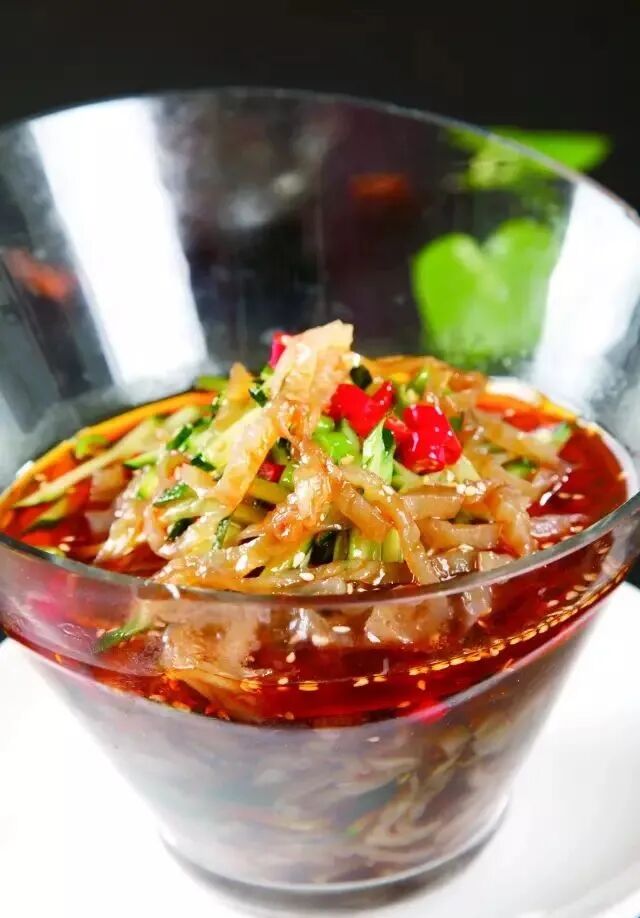 拌制蕨根粉等酸辣味的菜肴。