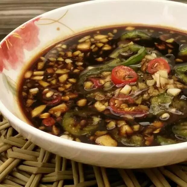 用料蒜头 3_5瓣小红椒 1_2只青椒 半只砂糖 少许鸡粉 少许生抽 2大勺热熟油 1小勺将用料保存到手机做法1将蒜头和辣椒分别洗切处理好 。2去衣的蒜头切粒,辣椒切圈。3加入砂糖、鸡粉、生抽、热熟油拌均匀即成。4可根据需要多少蘸量用小蘸点碟随意盛上。5「青柠」上面简介中提及可用酸味的蘸汁,在上面蘸汁基础中加入这青柠仔汁蘸汁则变为酸辣海鲜蘸汁。这蘸汁可因个人喜爱随意加些生姜丝。在此蘸汁基础上加入青柠汁,则演变成酸辣的蘸汁。万能凉拌汁