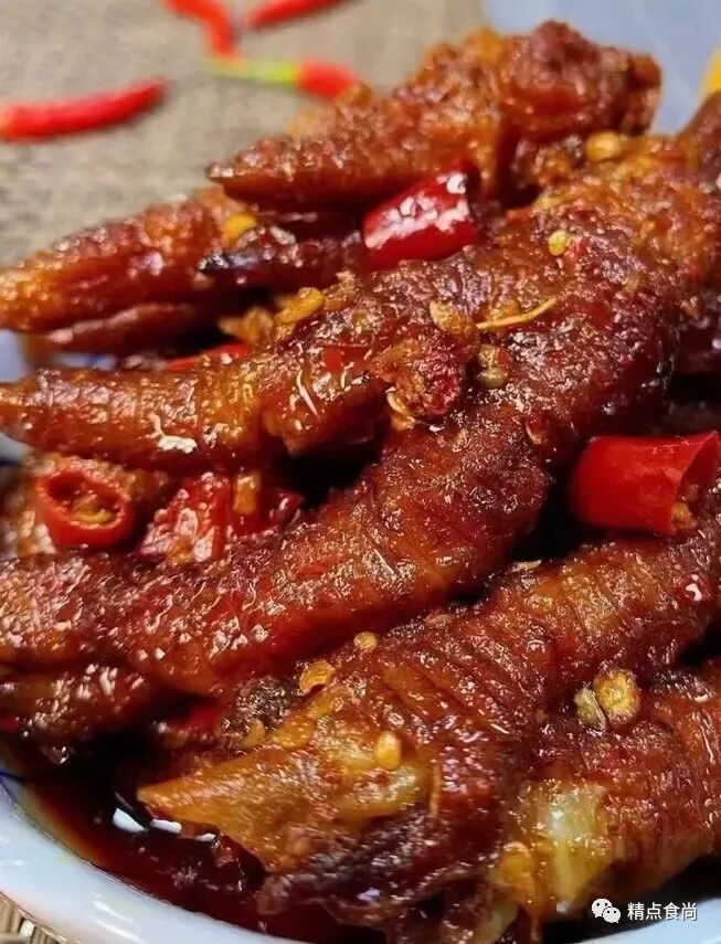 制作步骤1.一斤鸡爪自然解冻,沥干水分。2.一斤(500克)鸡爪加入醪糟汁(20克)搅拌均匀。3.起锅烧油到200 度,放入鸡爪,定型后搅拌均匀。炸至起虎皮,成金红色就可以了。4.煮虎皮鸡爪所需材料盐(30克)、味精(10克)、八角(6克)、桂皮(10克)、香叶(3克)、十三香(6克),加入1000克水,(清水的量需要没过鸡爪五公分左右)大火烧开后转小火煮30分钟。煮30分钟后关火浸泡3小时,让鸡爪更入味。3小时后捞出虎皮鸡爪。大料水可以用两次。
