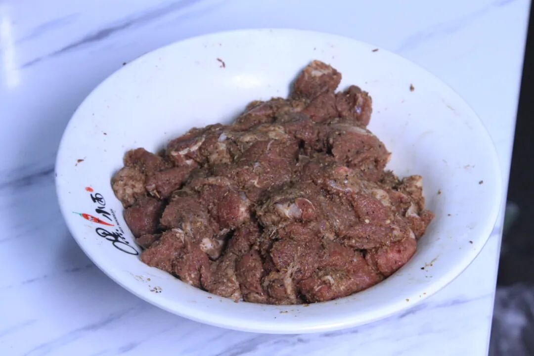 所有调料调和在一起,然后倒入切成片状的羊肉中,抓抹均匀后静置12小时以上即可。