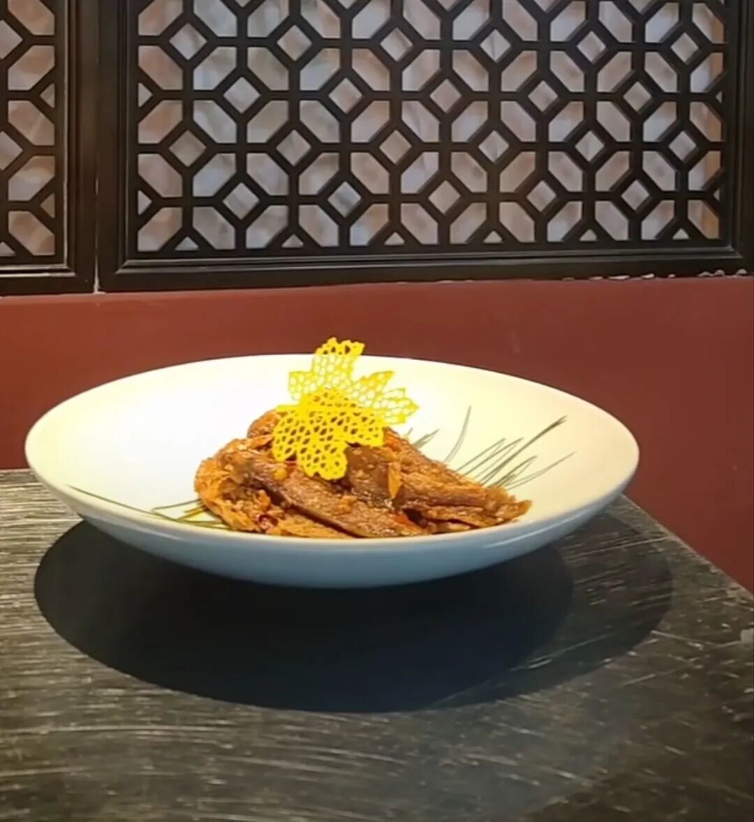 详细制作流程:将黄花鱼处理干净,去掉内脏,冲水备用,待黄花鱼控干水分放入腌料中进行腌制一小时左右捞出后进行油炸,下入酱料加入老汤放入蒸锅蒸制25分钟即可,自然冷却。