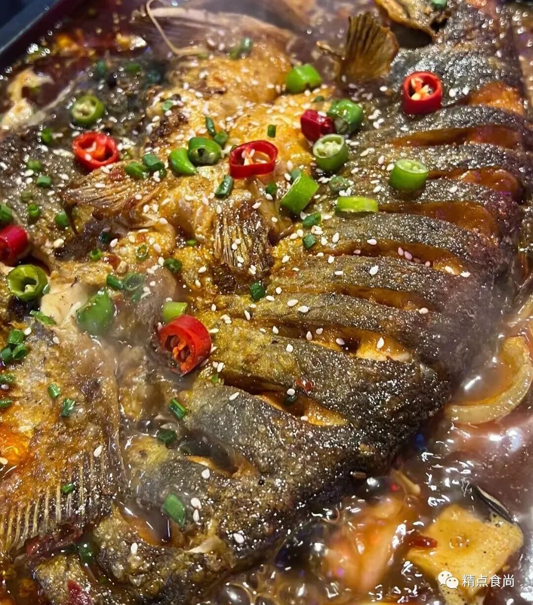 准备草鱼一条,先将鱼宰杀清理干净,从背切开,背部连接,鱼身两遍大上花刀,用盐、白酒、码一分钟;二,将码好味的鱼放到淹鱼水里泡3-4分钟。三,将淹好的鱼放到烤盘里【烤盘里用少许豆芽,洋葱打底】四,香辣味调盖料;准备香辣酱底料100克,红油250克;啤酒200克;鸡汁10克,鸡精25克,味精25克,糖4克,孜然粉5克,干辣椒50克【内黄新一代满天星1;1】,青红花椒20克,盐2克,十三香3克;姜蒜25克【蒜多姜少】以上所有调料放一起调汁。淋在鱼上包好烤12分钟,烤好后撒上葱节香菜节即可