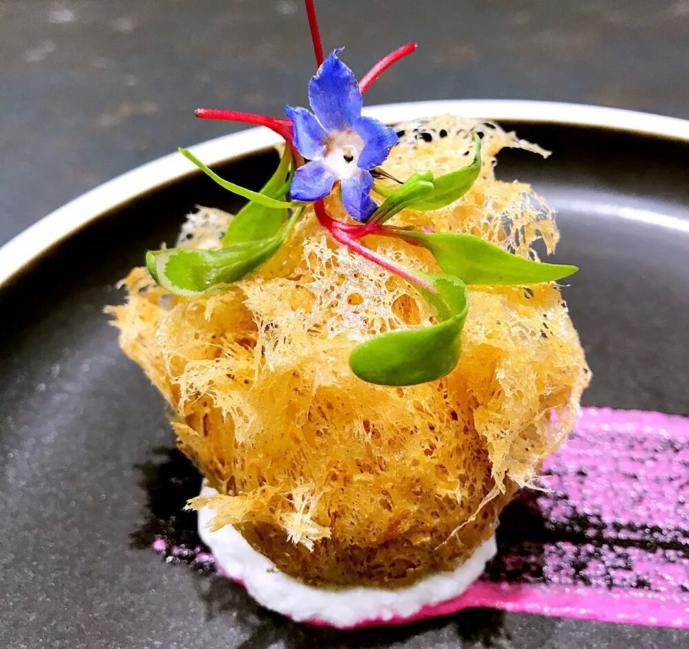 卡露咖鲟鱼籽酱2克,迷迭香1根,百里香2根,麦芽糊精10克,柠檬汁少许。