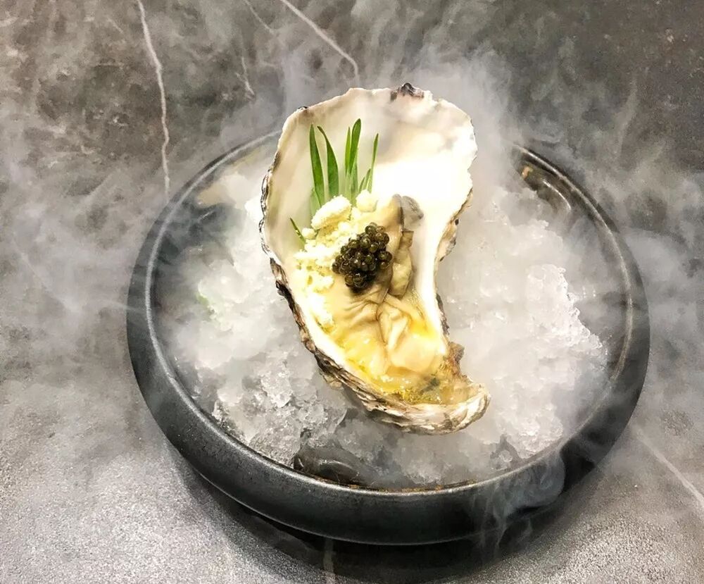 香草油法国吉拉多生蚝佐卡露咖鲟鱼籽酱