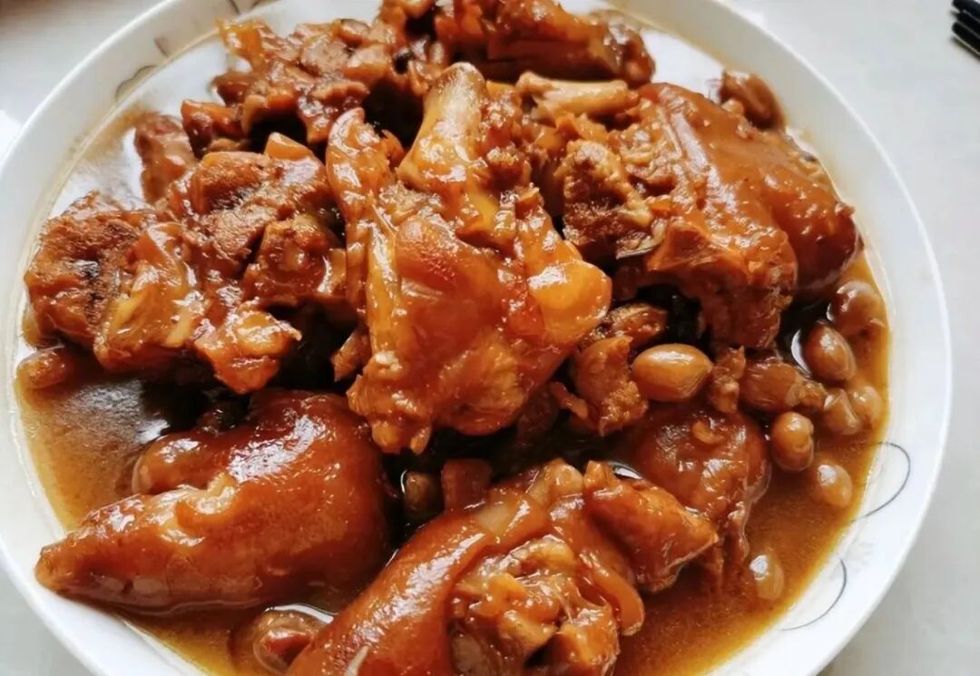 花生加水浸泡,泡一个小时。猪蹄剁成小块,清洗干净。