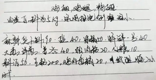 麻辣臭干料90克,盐40克,味精50克,特鲜1号40克,大蒜、洋葱、姜各40克,肉松粉20克,白糖10克,料酒50克,生粉200克,鸡肉香精20克,低温腌制两小时以上可以使用。