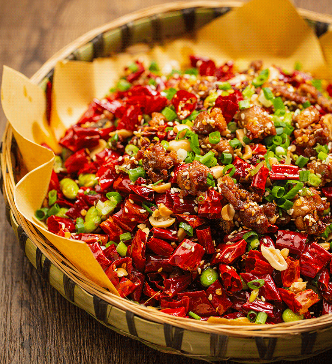 三剑客’,即花椒中的红袍椒、青花椒、藤椒;加以盐糖醋定底味,姜葱蒜跑龙套,再通过善用巧配、精烹妙调,百菜百味,麻辣无间道之风味魅力方可层层展现。这些“经验之谈”,当然是在书本上,甚至在烹饪学校里看不到,听不到的。