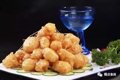 外形酥脆,颜色金黄,但不如用蛋黄糊浸炸的菜肴黄亮。