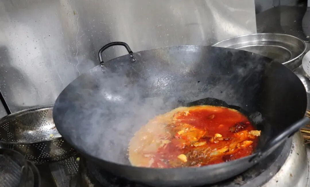A:这道菜没有加入较多的酱类调料,也未使用其他富含胶质的原料,汤汁很难自然收浓,如果只用淀粉勾到适合的浓度,上桌后稍微一凉汤汁就会“结皮”,因此我们用加鸡爪泥的办法增浓汤汁,这样也能起到蛋白质互补的作用,让鲜味更加浓郁。这道菜半扇鱼头为一份,加入的鸡爪泥成本只有三元钱,不会对毛利有太大影响。