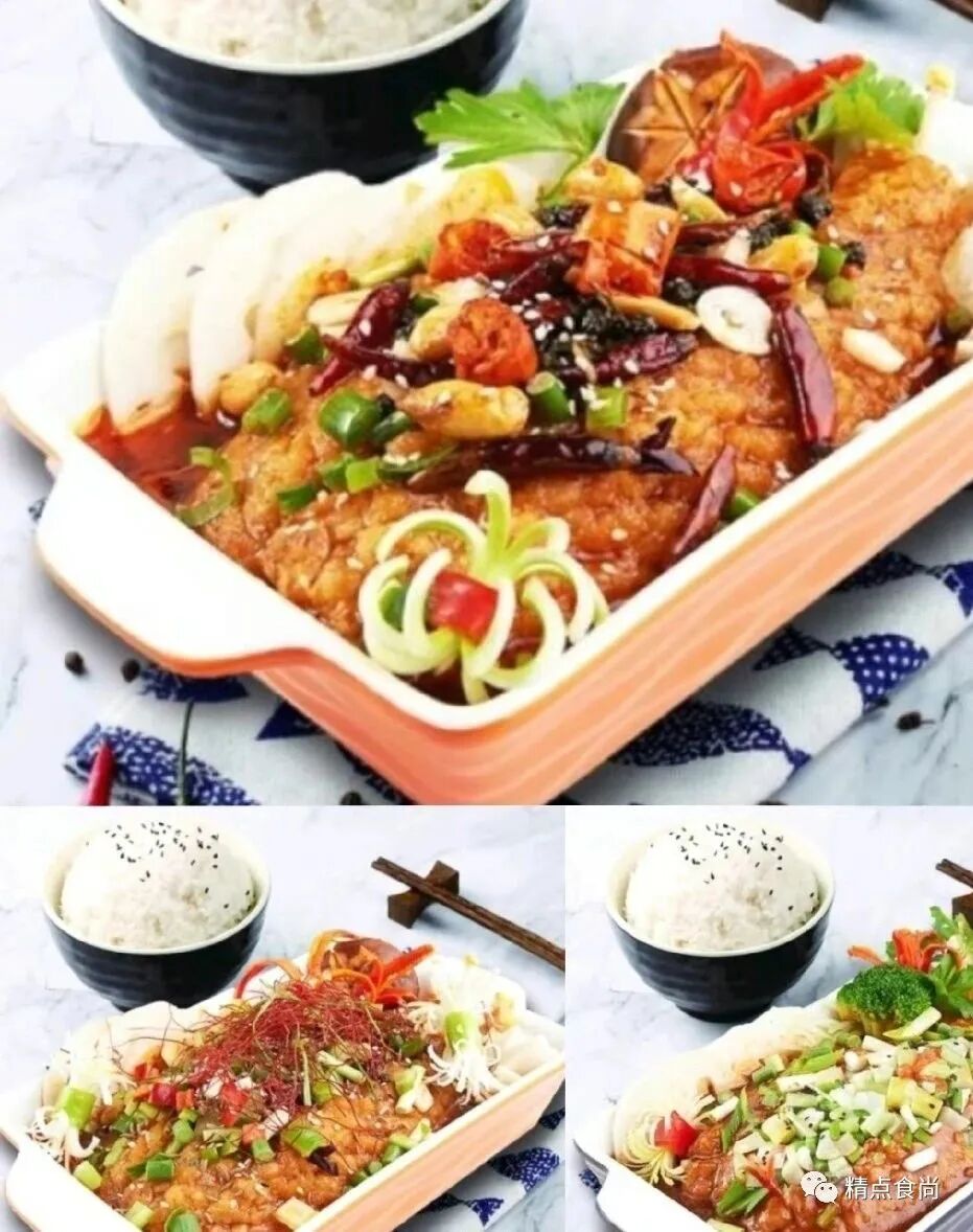 三、香辣味调盖料准备香辣酱底料300克、红油120克、色拉油120克、高汤或水240克、猪油80-100克、麻辣风暴20克、鸡精25-30克、味精25-30克、糖2克、烤的香5克、孜然粉5克、干辣椒一平碗【内黄新一代和满天星2比七1,吃的不辣只要内黄新一代】、青花椒25克、盐2克、十三香3克、姜40克、蒜50克[蒜多姜少。首先起锅加入猪油、红油、色拉油、油温不能太高加入辣椒节一平碗[要去籽接着下花椒炒香放姜蒜,接着放香辣酱底料不用炒直接加水240克,水开调味加鸡精味精、糖盐、放入喜欢的配菜(配菜烫熟装盘)最后加入麻辣风暴、烤的香、孜然面、十三香,起锅/倒在鱼上即可。