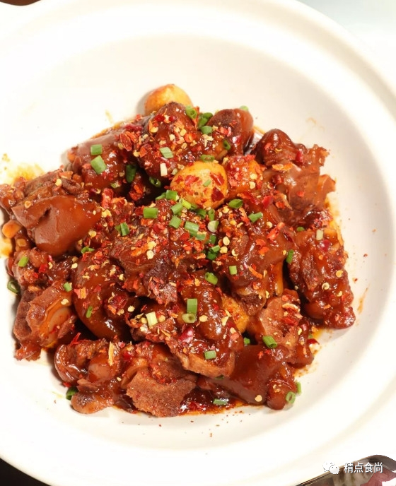 猪蹄这种食材无论是烤还是卤,只要好吃,总能在餐桌占有一席之地。大蓉和这款秘制猪手在传统做法的基础上添加了党参和黄栀子,走菜时撒辣椒粉增香解腻,成菜颜色红亮诱人,带有淡淡的药香,口感粑糯弹牙,是一款非常受欢迎的猪手菜,一天能卖40份!