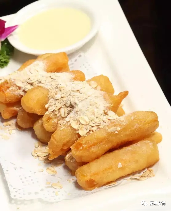 南瓜条裹匀脆炸糊,依次下入四成热油,边炸边用勺子搅拌,浸炸2分钟至颜色微黄,改大火将油温升至七成热,继续炸至颜色金黄、外壳酥脆,捞出用吸油纸吸干油分后摆入盘中,撒自制燕麦片30克即可走菜。