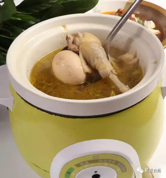 在海鲜池旁边的架子上,摆了满满两排果绿色的电饭煲,这是“徽三”的另一招牌——土鸡汤。此菜选用高山放养的老母鸡制作,从不隔夜,每天早晨供应商把刚刚宰杀放血的土鸡运到店内,现场去掉鸡头、鸡脖、内脏,斩成大块。付国兵请了一位大爷专门负责此菜,他早上六点就要准时到店,按照大份750克、小份500克的标准将鸡块、鸡腿、鸡翅分入电饭煲,注入清水,除盐外不放黄酒、葱、姜等任何调料,每只大煲内放四个土鸡蛋,小煲内放两个鸡蛋,调至焖饭档,煨足6小时,开餐后直接端上桌即可。每煲88元,日售30煲。