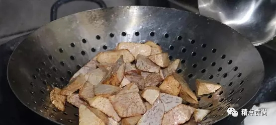 1.广东炮弹芋头改成滚刀块,入沸水煮3分钟至断生,捞出沥干后入六成热油炸香。