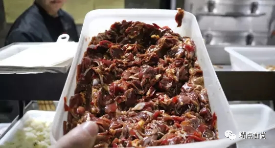 2.牛柳10千克冲水洗净,改刀成片,投入清水浸泡2个小时,捞出沥干水分纳盆,调入蚝油250克、美极鲜酱油50克、小苏打40克、味精20克、白糖10克,打入鸡蛋5枚抓匀,顺时针搅打上劲,待牛柳片表面晶莹水润,添生粉250克继续搅打至均匀,封保鲜膜送入冰箱浆制8小时。