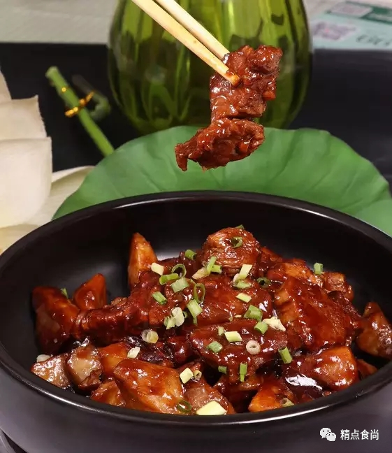 北京宴行政总厨彭华强从山西收购百姓自酿的老陈醋,用来烧牛肉块。调入的陈醋有一部分沁入肉块中,还有一部分挥发出来,成菜醋香满堂但又吃不出倒牙的酸度,非常巧妙。