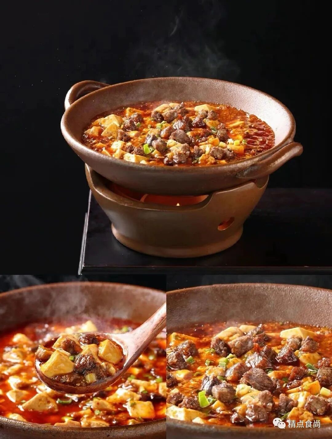 麻婆豆腐做法:1、豆腐500克,切成2厘米左右小方块,然后放进淡盐水里泡一会儿,再焯水,起锅倒入盆中冲水淘洗一遍。盐水浸泡可以让豆腐中的大豆蛋白结构变得更紧致,这样后续操作的时候不那么容易碎,而给豆腐焯水的目的是为了去除豆腥味,可以让最后成菜的味道融合的更好。2、把肥瘦相间的牛肉剁成肉末,有筋膜最好去掉;接着锅中下油烧热,把准备好的生肉末下锅小火煸炒,水份炒干,牛肉爆香,然后下豆瓣酱2汤匙和豆豉1汤匙,老姜大蒜米各10克,辣椒面10克,花椒面半汤匙,中小火爆香并炒出红油;3、锅中炒出红油、爆香之后,加入开水大火将汤汁烧开,下盐少许、糖1汤匙、鸡精1汤匙、酱油1汤匙完成调味和调色;可尝尝汤汁咸淡,看味道是否合适。