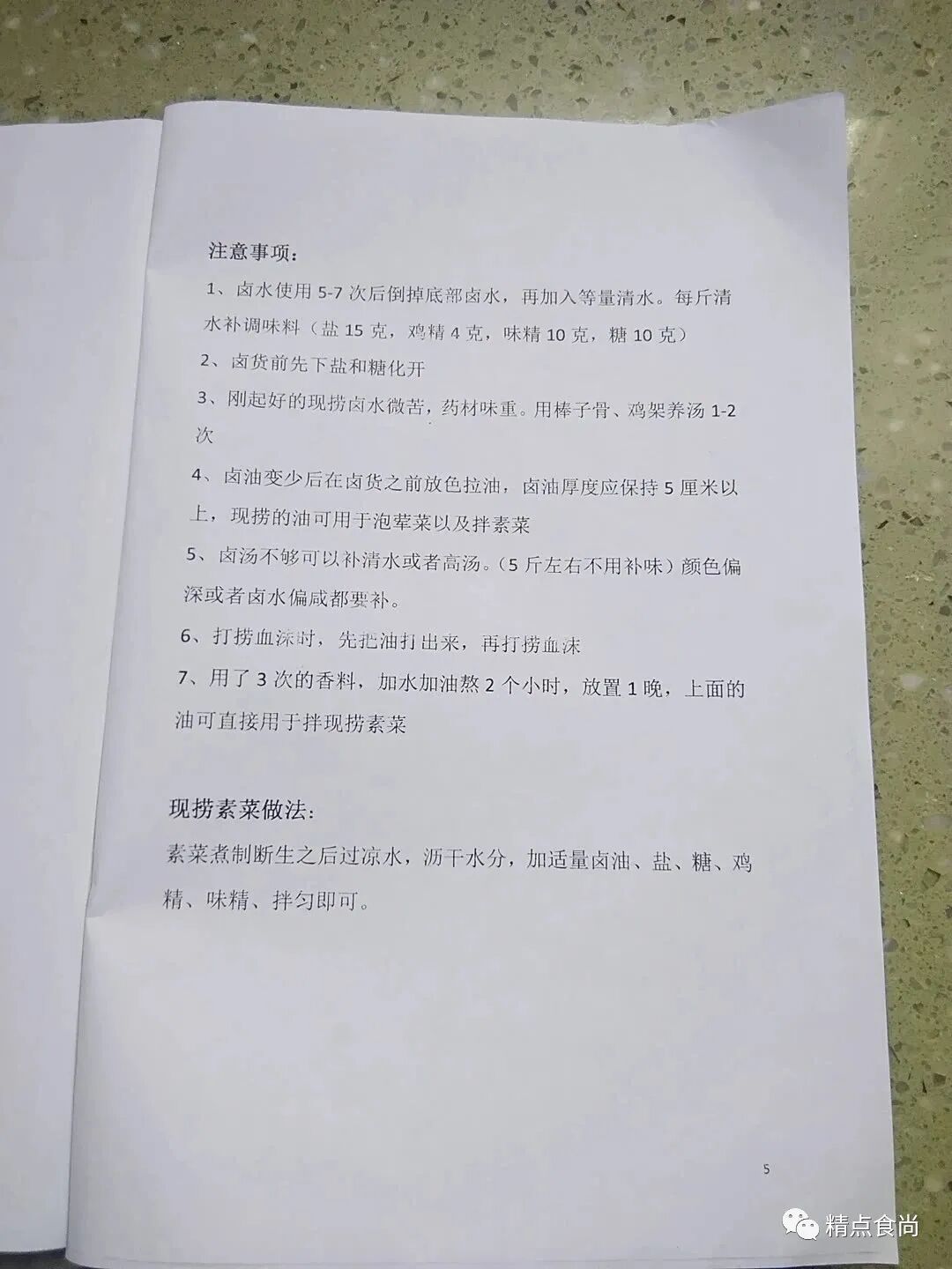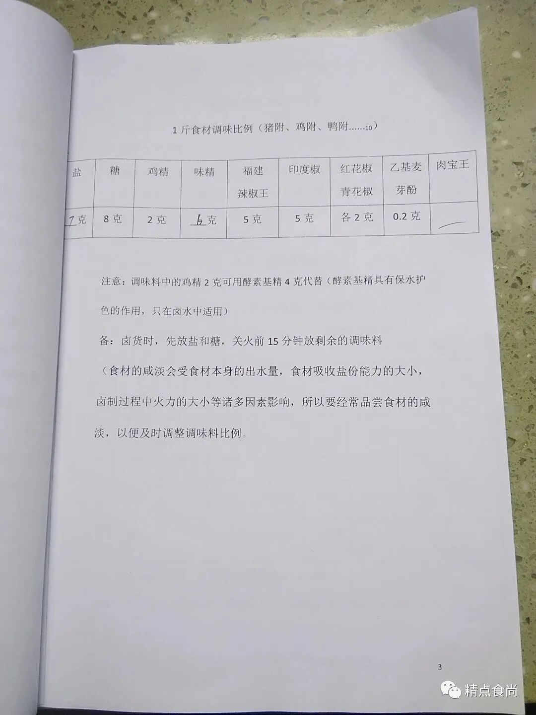 4、汤底味:1斤卤水加盐 17 克、糖 10 克、味精 10 克、鸡精4克.