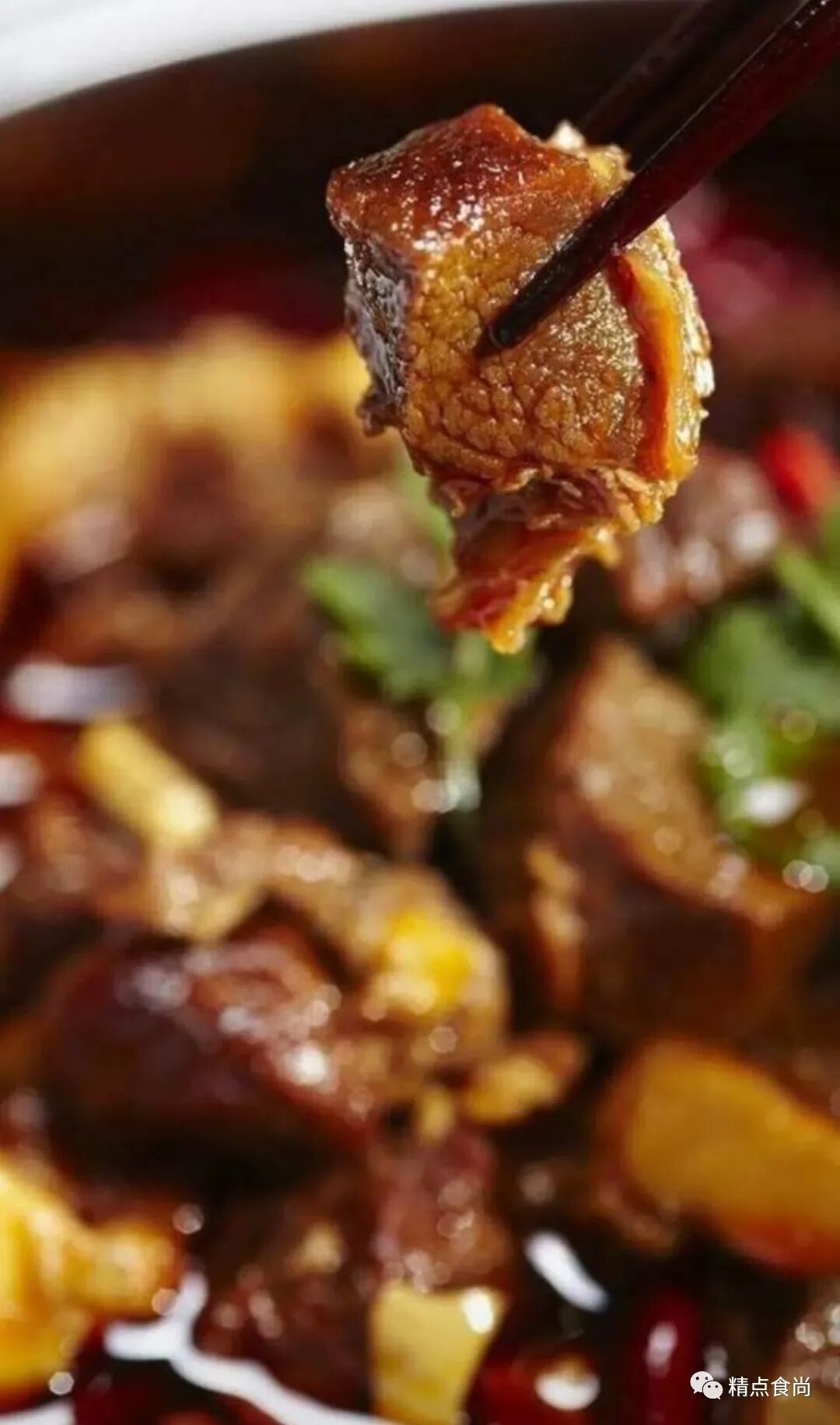 3、擦干净锅边,将卤好的肉摆放在上面。4、牛骨头麻辣红汤锅兌锅配比