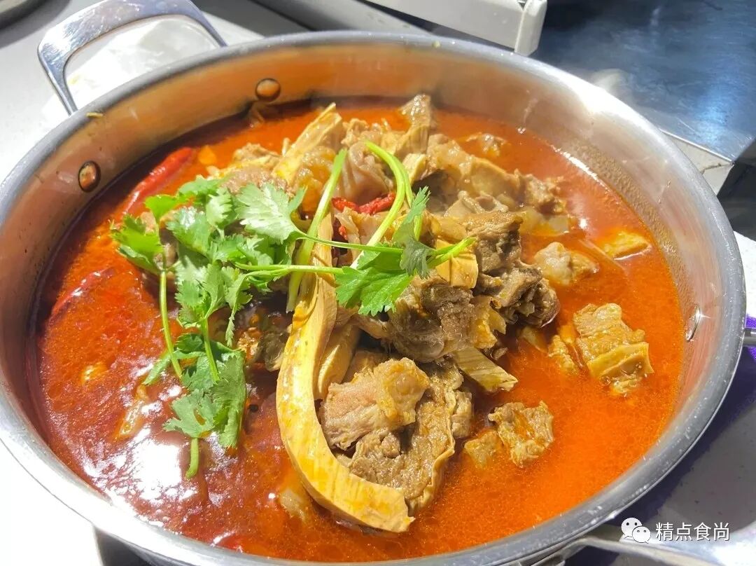 5、顿好的牛骨做到颜色不发黑,离骨而不脱骨,口感有弹性,看见肉肥嫩饱满(光骨头不能上桌)。牛骨头火锅的允锅比例
