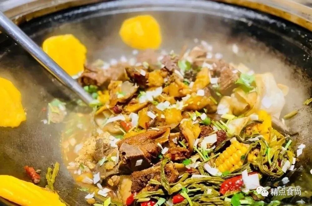香料配比:青麻椒15克,八角10克,荜拔5克,白扣5克,草果5克,良姜5克,肉扣5克,小茴香5克,丁香3克,桂皮3克,白芷3克,香叶1克,花椒8克,孜然粒10克,以上香料粉碎成颗粒状。分成两份,装入香料包内。