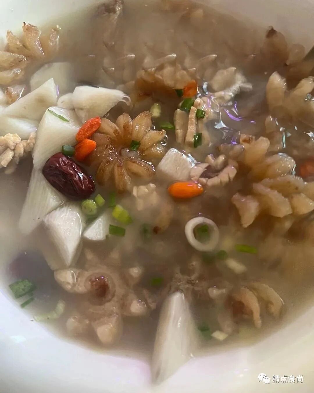 8、牛鞭煮好之后打开锅盖,将红枣放进去 枸杞 山药,还有牛蛋全部都放进去。最后放进去一勺胡椒粉,胡椒粉主要是可以去腥。盖上盖子再次压2分钟左右。