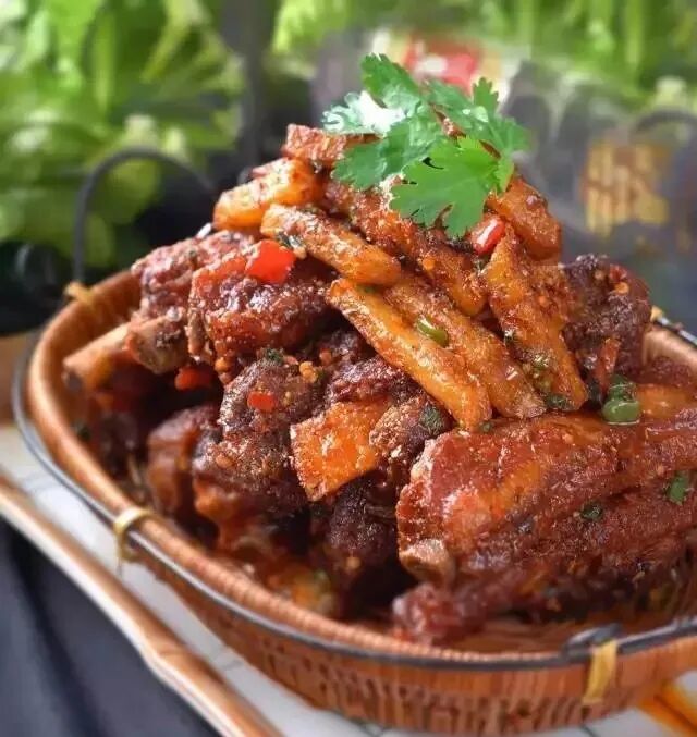 这款用“葱烧”技法制作的排骨,颇受家庭食客的喜爱。
