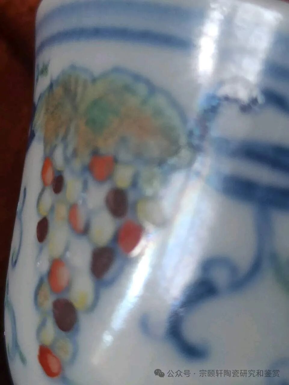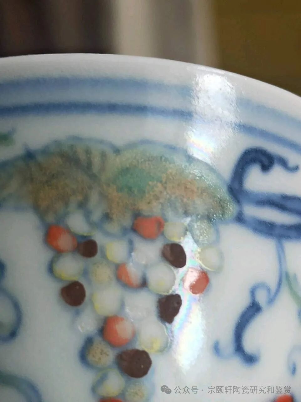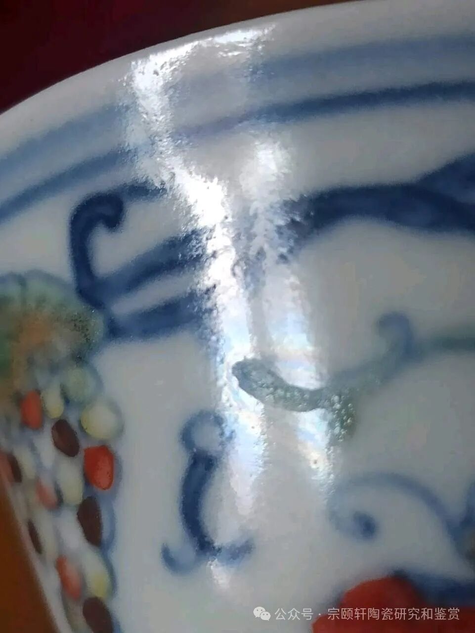 气泡随着时间的推移,跟人的年龄一样慢慢老化变色最后顶端破裂。还有部分入土瓷器,气泡里土沁开始慢慢侵入变色。这些都是景德镇目前乃至以后不能突破的。可以绝杀目前赝品。但是,有老化和死亡气泡,只能说它是一件老瓷器,并不能说它一定到代。然后再通过瓷器器形,纹饰 ,胎釉,胎骨,底足,修胎,胎骨的老化,胎釉的老化,画工神韵鉴赏,以及画工是否符合时代特征综合鉴定瓷器的真伪。