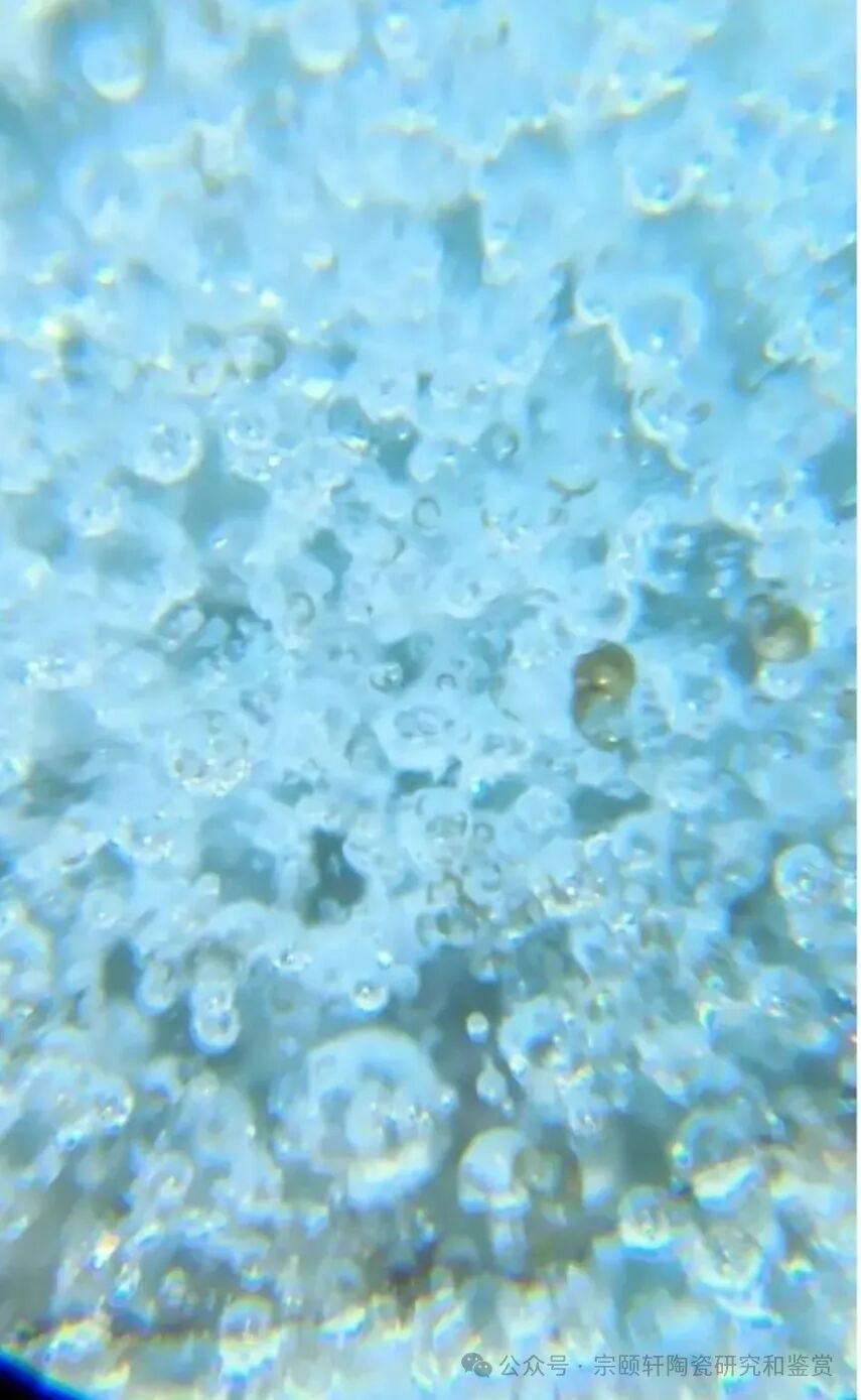 看瓷器外观老化痕迹,观察釉色的氧化特征也是不失一种不可仿的好方法。另外最重要的是学习掌握微观的老屌化痕迹鉴定法。微观的老化痕迹鉴定法有十多种,在这里主要的介绍一下气泡老化鉴定法。