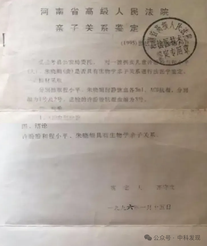 经过长达半个多月的漫长等待,朱晓娟终于拿到了河南省高级人民法院出具的亲子鉴定报告,报告上明确写着:许盼盼与朱晓娟夫妇存在生物学上的亲子关系。