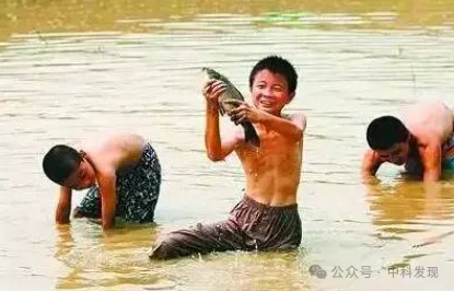 当小刚在河边放置捕获的鱼时,我迈出一步,却突然踩空,身体失去平衡跌入深坑的水域。