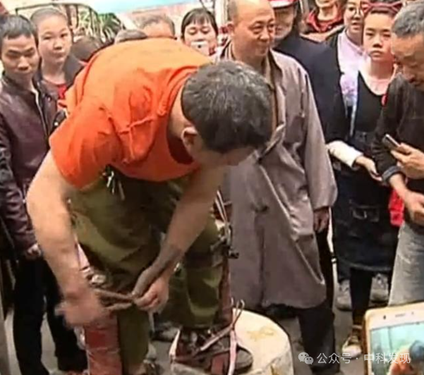 节目中的表演者,湖南人张亚辉,竟能穿着重达80公斤的铁鞋自如行走。