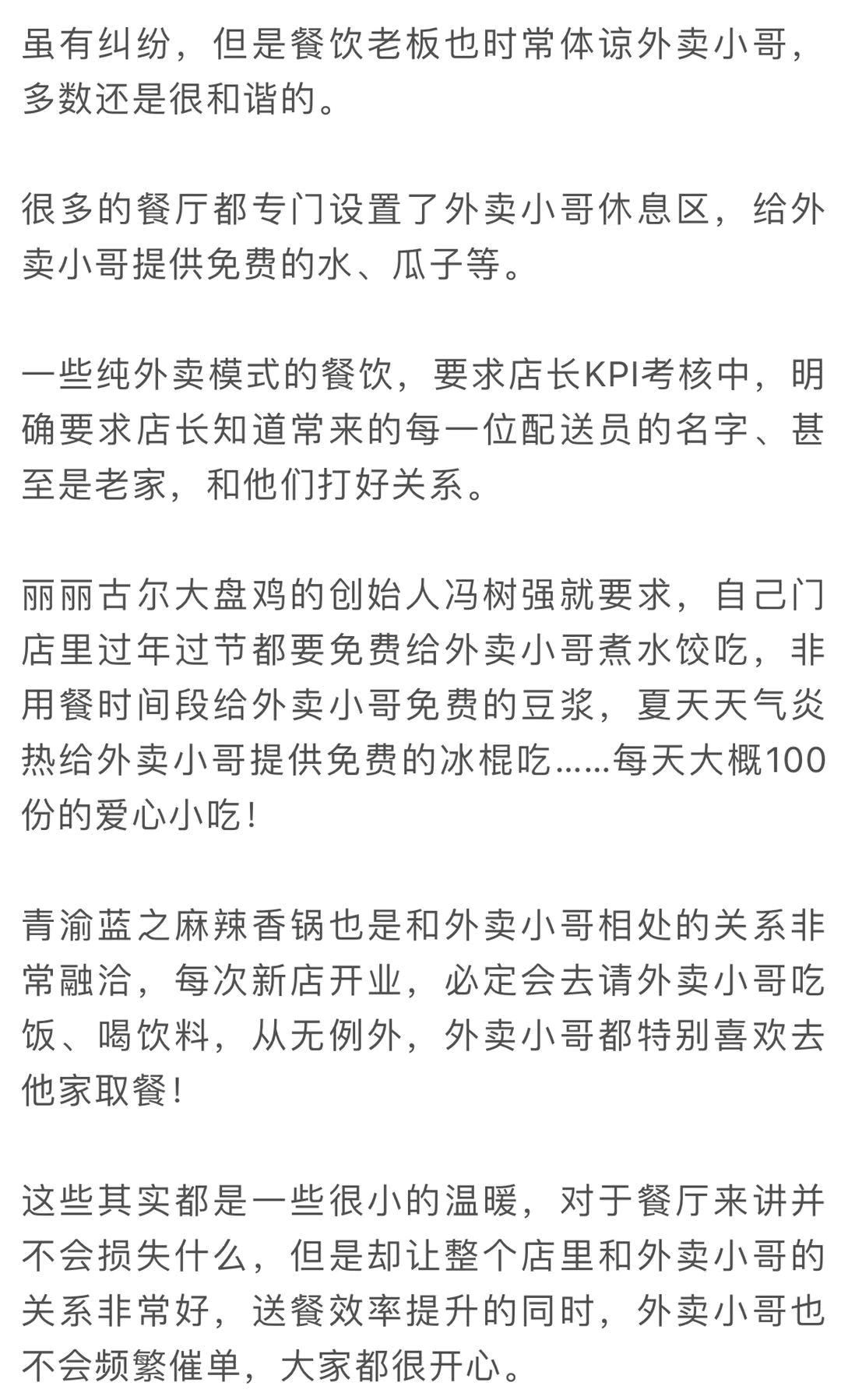 类似这样餐饮商家和外卖小哥和谐共处的案例数不胜数,毕竟大家赚钱都难得很,互相理解是很多人会选择的方式。