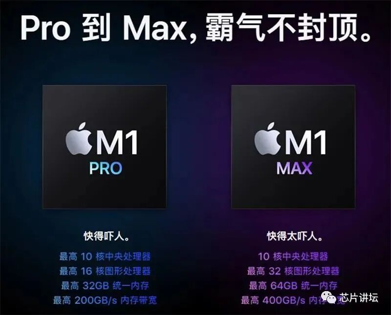 和MacBook Pro一起到来的是备受关注的“王炸芯片”M1 PRO和M1 MAX,两款芯片均开创性地将一套SoC芯片架构放进专业笔记本电脑里。