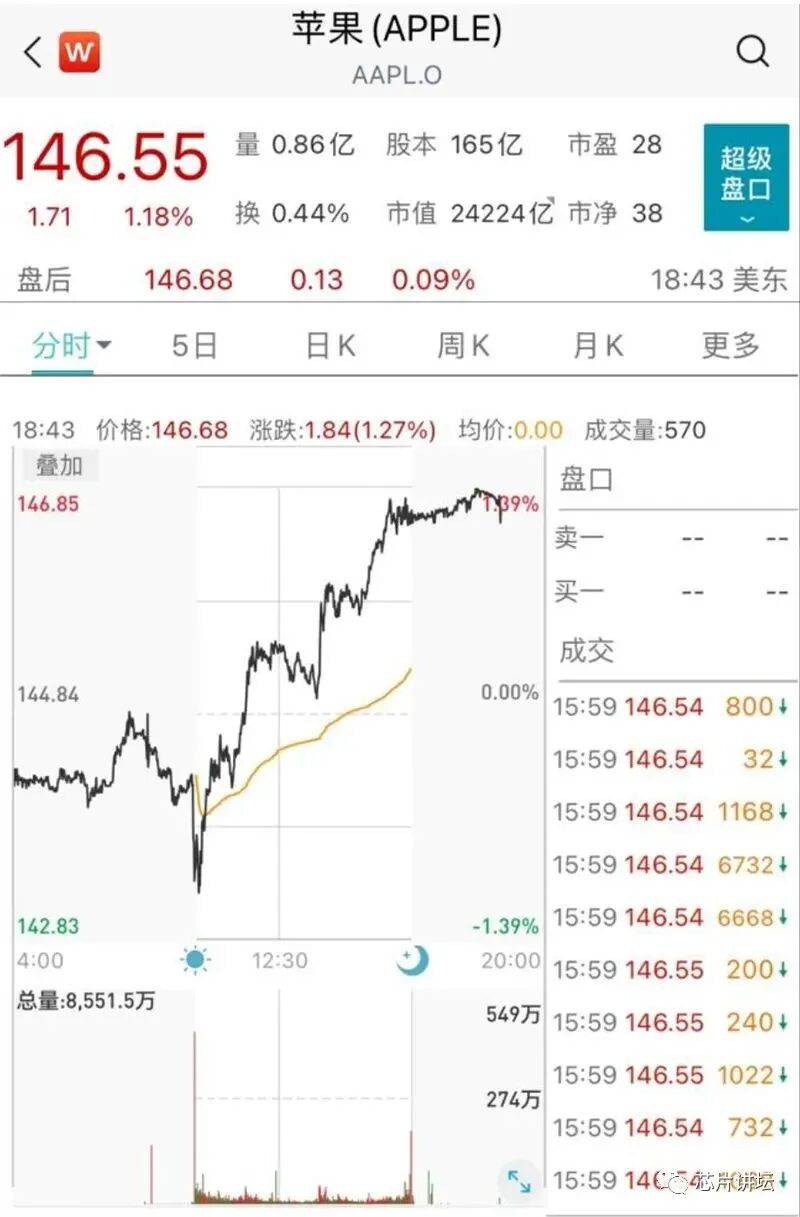 在发布会举办当日,苹果公司股价收于146.55美元,上涨1.18%。