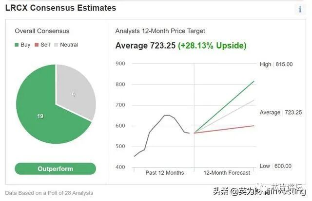 (LRCX股票评级和12个月目标价预期,来自英为财情Investing.com)