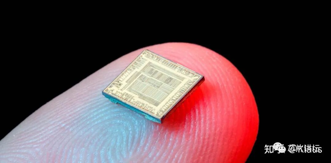 首先,咱们来认识一下芯片。我在下面给你放了一张芯片的照片,这么一个小薄片就是芯片,上面排布了许许多多的晶体管。