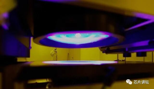 光刻机的光源使用波长极短的极紫外光,该技术是使用激光产生等离子源产生13nm的紫外波长。这种光源工作在真空环境下,产生紫外波长,然后由光学聚焦形成光束,光束经由用于扫描图形的反射掩膜版反射,由于极紫外光的固有特性,产生极紫外光的方式十分低效。能源转换效率只有 0.02% 左右。