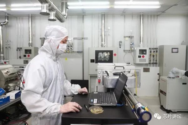 复旦大学教授张卫、周鹏团队成员在观察硅片表面。新华社发