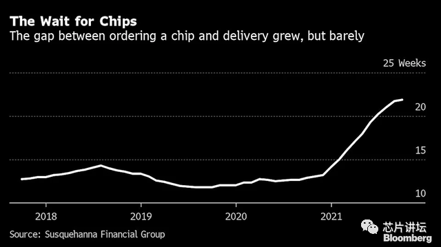 美国萨斯奎汉纳金融集团(Susquehanna Financial Group)的研究显示,与9月份相比,10月的芯片交货期仅增加了一天,至21.9周左右。