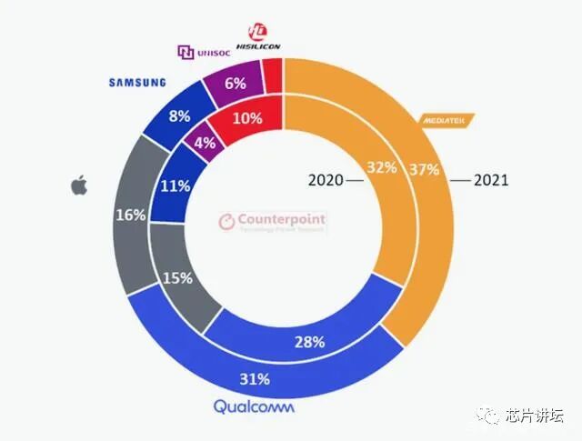不过,高通虽然的营业收入和净利润上为资本市场带来了惊喜,但在市场占有率上却输给了中国芯片龙头——联发科。