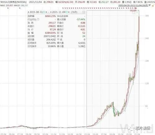 受益于全球芯片需求量加大,最近再叠加布局元宇宙市场,自今年年初以来,英伟达市值已涨超100%,超越股神巴菲特的伯克希尔哈撒韦,成为美股第七大上市公司。自2015年以来,公司股价累计涨幅已超过60倍。