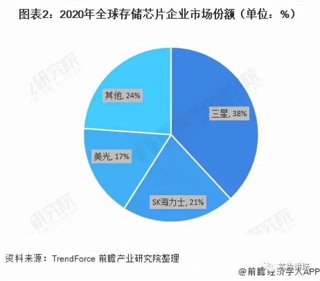 与大多数半导体芯片产业一样,储存芯片的行业集中度较高,客户壁垒比较稳固。目前全球的储存芯片市场被三星、SK海力士、美光三大巨头主导。参考Trend Force在2020年发布的“2020年前三季度各大厂商储存芯片营收数据”可知,韩国的三星、SK海力士和美国的美光拿下了全球76%的市场份额。