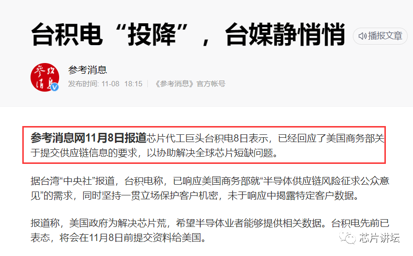 然而,网友们恐怕要失望了,据媒体最新报道,在刚刚过去的周日,台积电的发言人已经明确承认,台积电已经于11月5日正式向美方提供了芯片数据,总共3个文档,包括公开的表格1份,和包含商业机密的非公开档案2份。