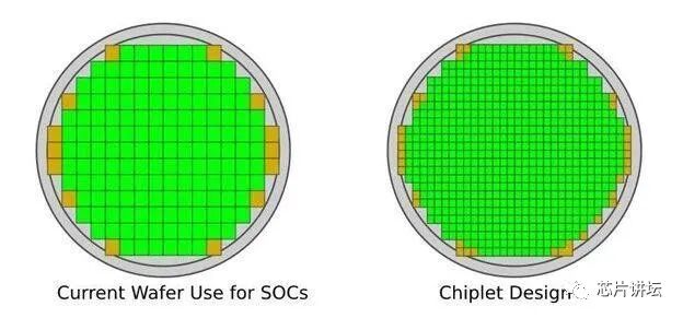 Chiplet“小芯片”技术,顾名思义,就是用多个小芯片封装在一起,用die-to-die内部互联技术,组成异构System in Packages( SiPs)芯片。而更小的芯片单体,可以提高每片晶圆的利用率,从而降低成本。