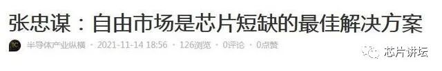 在此前的APEC会议上,针对全球芯片短缺的问题,张忠谋表示,想要解决芯片短缺的问题,自由贸易、自由竞争的自由半导体市场,是解决问题的最佳方案。