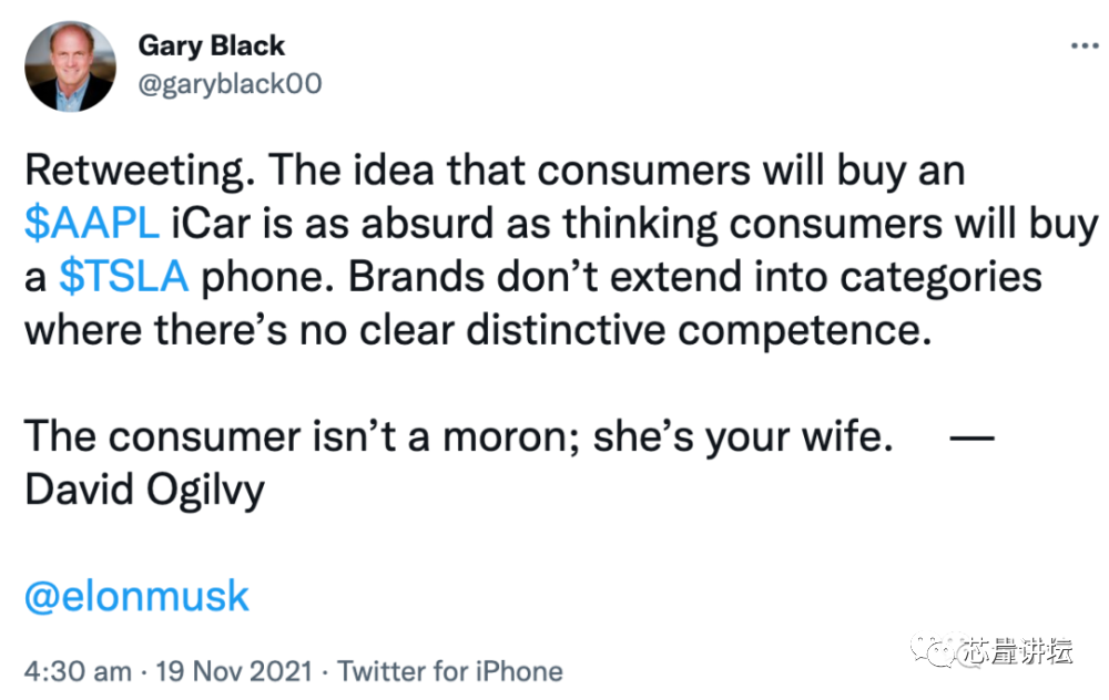 就在网友发出“你真的会买一辆苹果汽车或者一部特斯拉手机吗?”的灵魂质问时,这位简介里写了特斯拉投资人的博主,默默地转发了这则苹果加速造车的新闻: